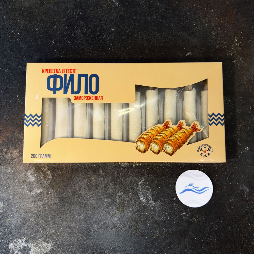 Креветки очищенные, обёрнуты в тонкое тесто фило. При приготовлении тесто становится лёгким и хрустящим, а креветка остаётся сочной и нежной внутри.
