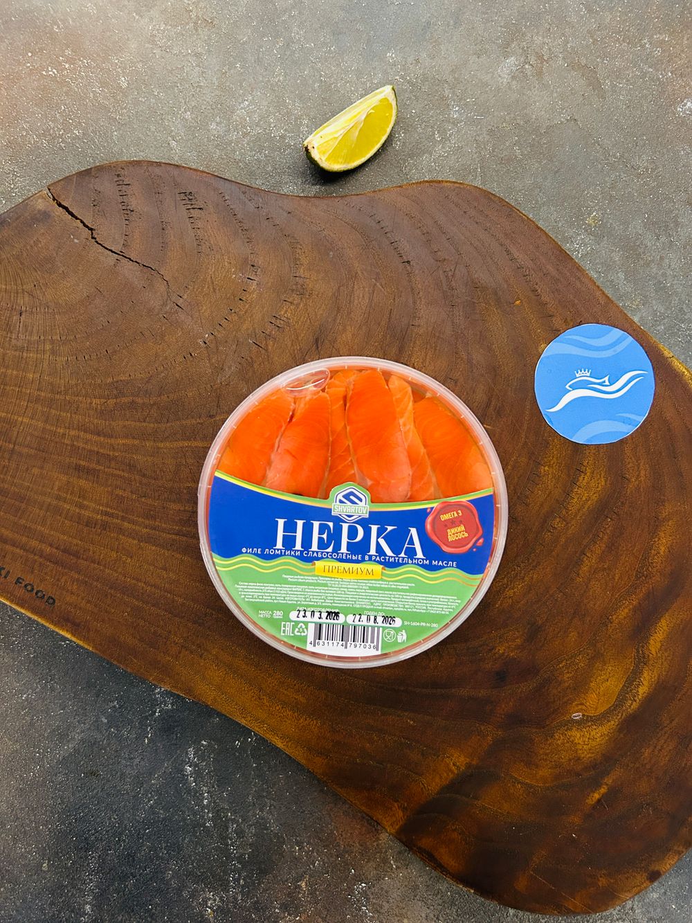 Ломтики нерки сочные, плотные, с ярким вкусом и естественной жирностью. Масло подчёркивает вкус рыбы и делает его более мягким и выразительным.