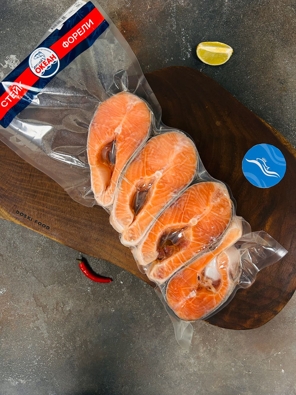 Форель стейк Турция в «Дары Камчатки» (Краснодар) — нежная рыба с сочным мясом и мягким вкусом.