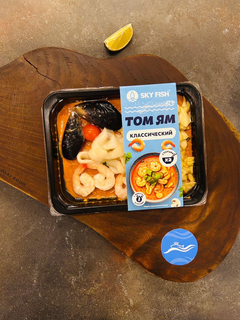 Бульон насыщенный, с характерной кисло-острой основой и сбалансированным вкусом. В составе морепродукты и классические ингредиенты, которые раскрываются при приготовлении.