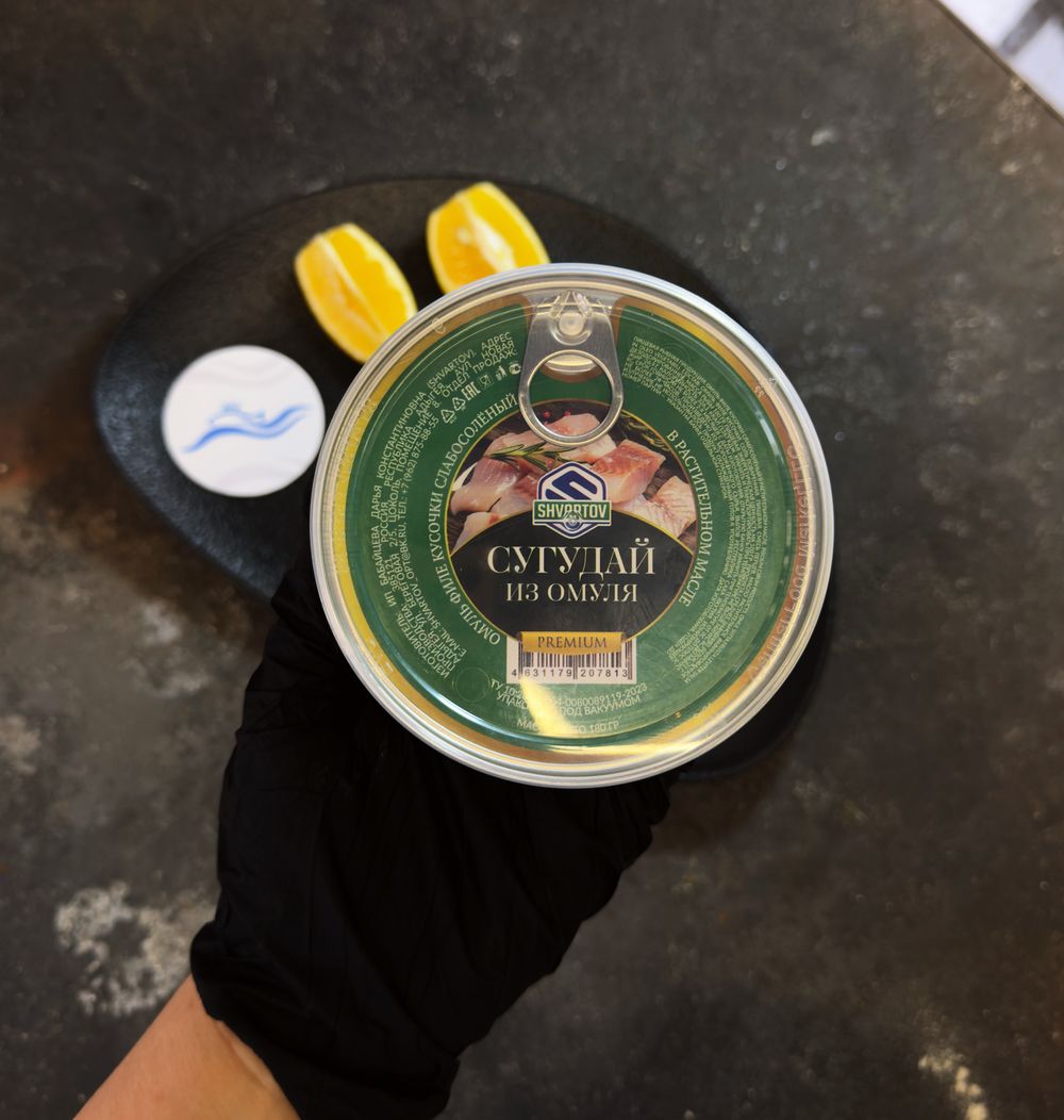 Сугудай из омуля в «Дары Камчатки» (Краснодар) — северный деликатес с нежным вкусом и мягкой текстурой.